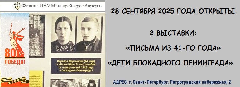 ДВЕ ВРЕМЕННЫЕ ВЫСТАВКИ "ПИСЬМА ИЗ 41-ГО ГОДА" И "ДЕТИ БЛОКАДНОГО ЛЕНИНГРАДА"
