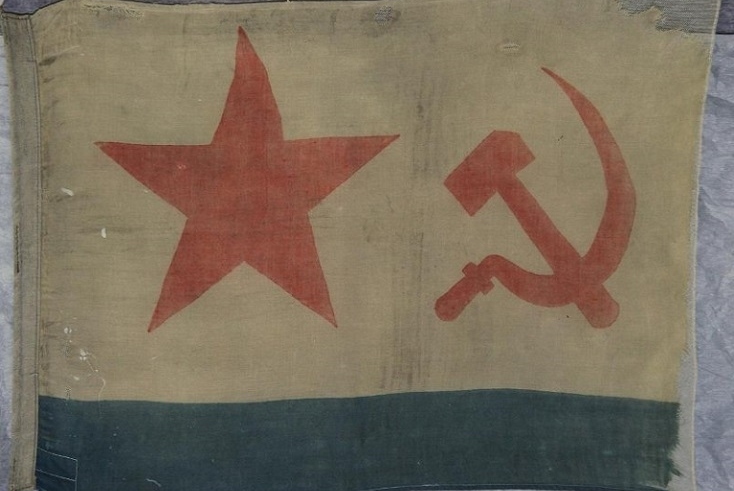 На фото: ЦВММ. Флаг военно морской, переданный на основании приказа НК ВМФ за № 268 от 27 июля 1945 г. на вечное хранение в ЦВММ поднятый г. Фюрстенберге моряками Днепровской флотилии 24 апреля 1945 г. Период создания:1941-1944 гг. Номер в Госкаталоге: 41401911.