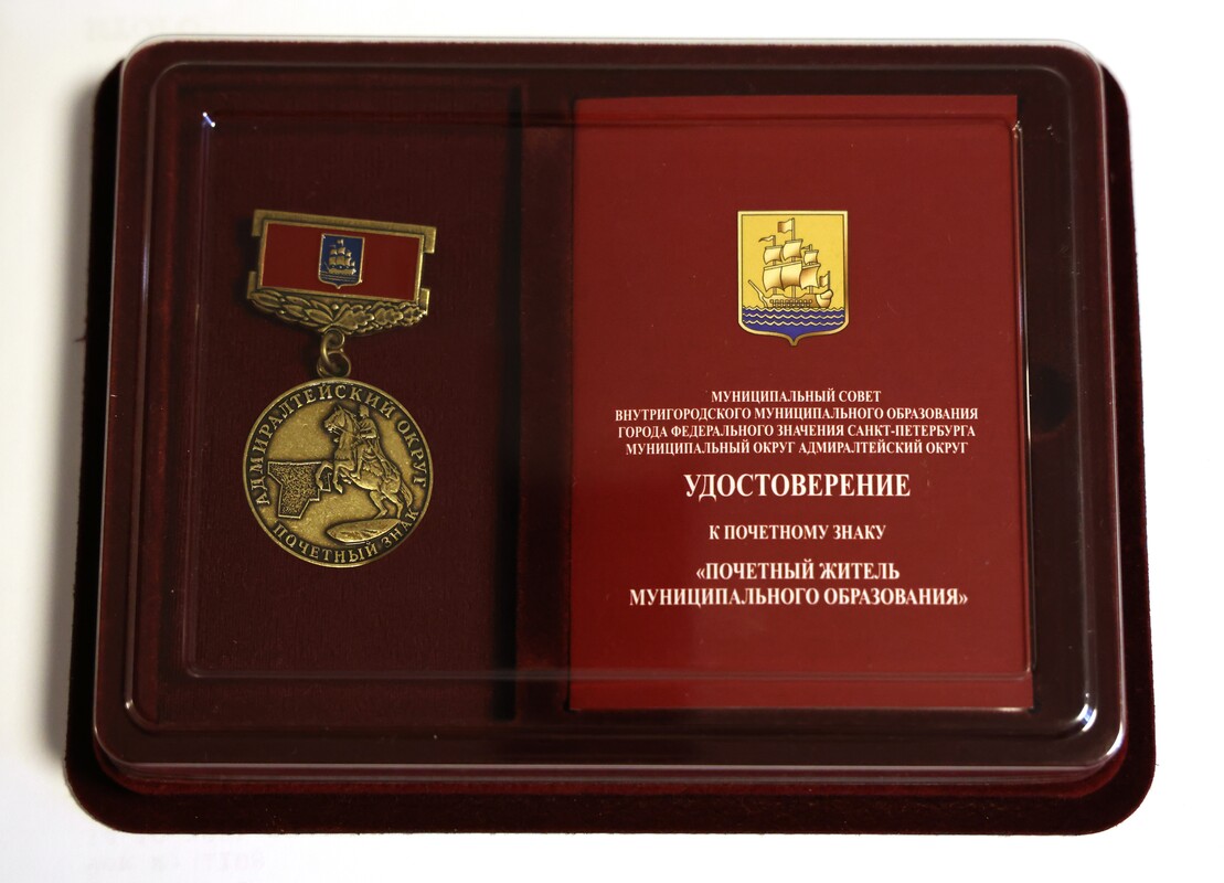 Звание «Почётный житель муниципального образования Адмиралтейский округ» присваивается лицам, которые внесли значительный вклад в развитие округа, укрепление демократии и защиту прав человека, развитие культуры и искусства, науки и другие области.
