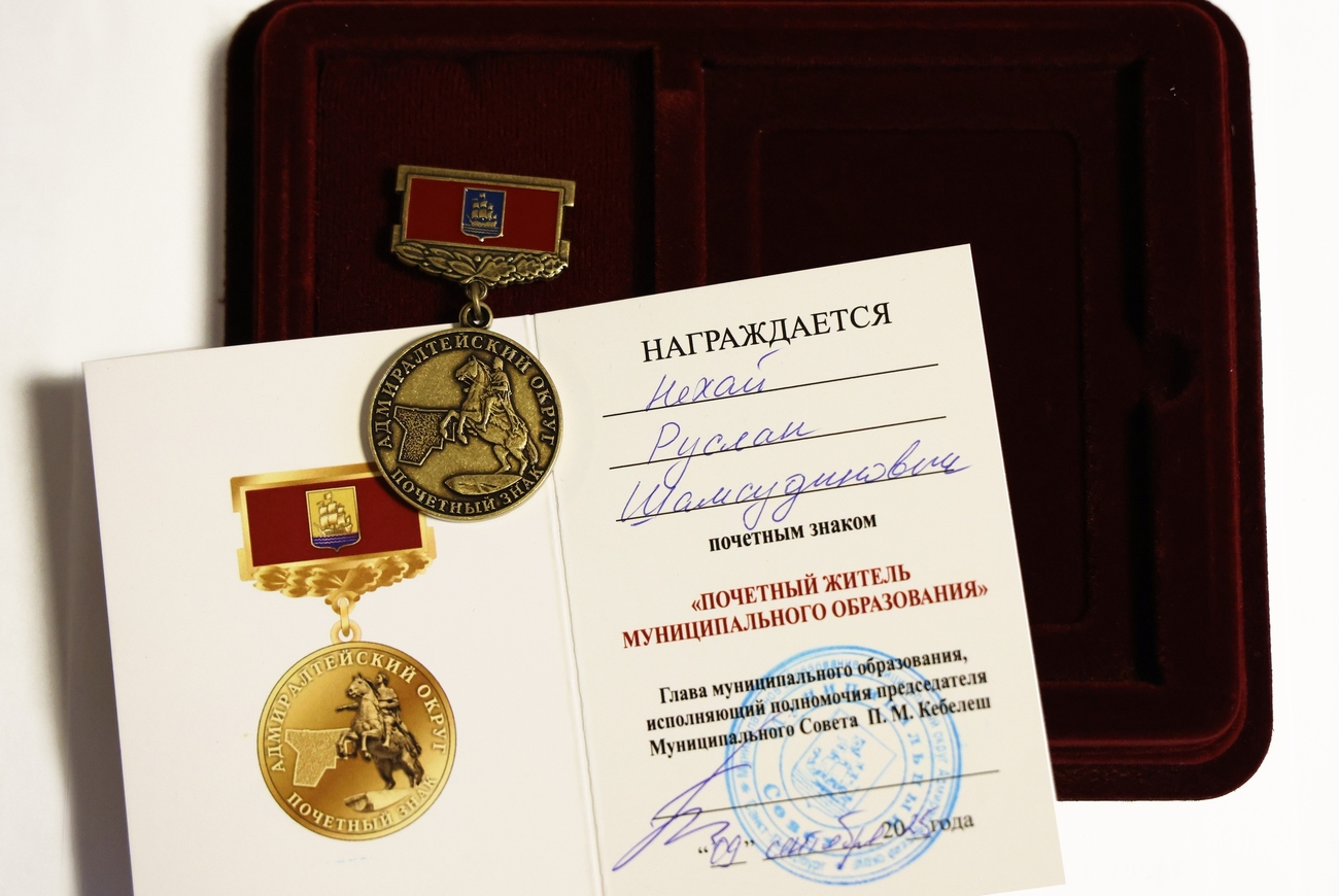 Директор Центрального военно-морского музея имени императора Петра Великого Руслан Шамсудинович Нехай удостоен звания «Почётный житель МО Адмиралтейский округ».