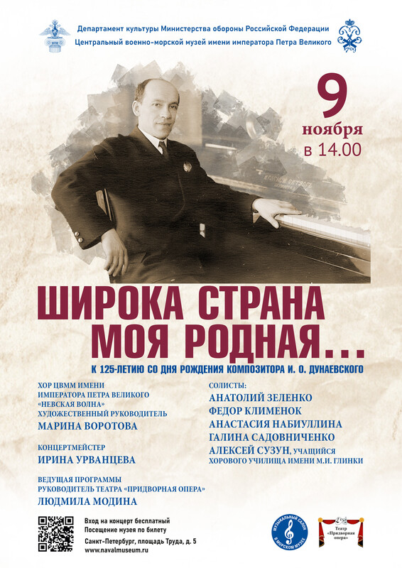 9 ноября в 14 часов приглашаем вас на концерт к 125-летию со дня рождения композитора И.О. Дунаевского «Широка страна моя родная…».
