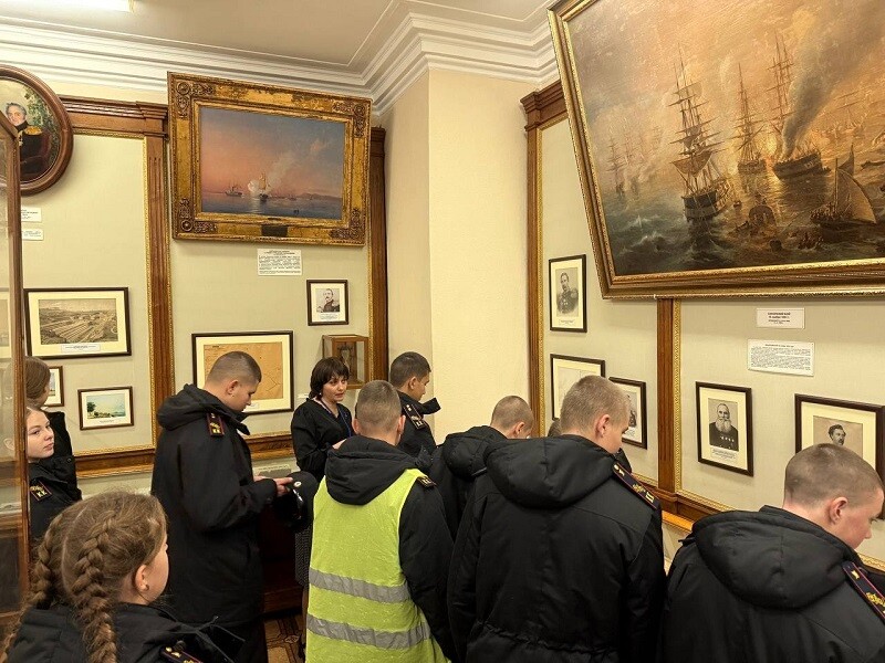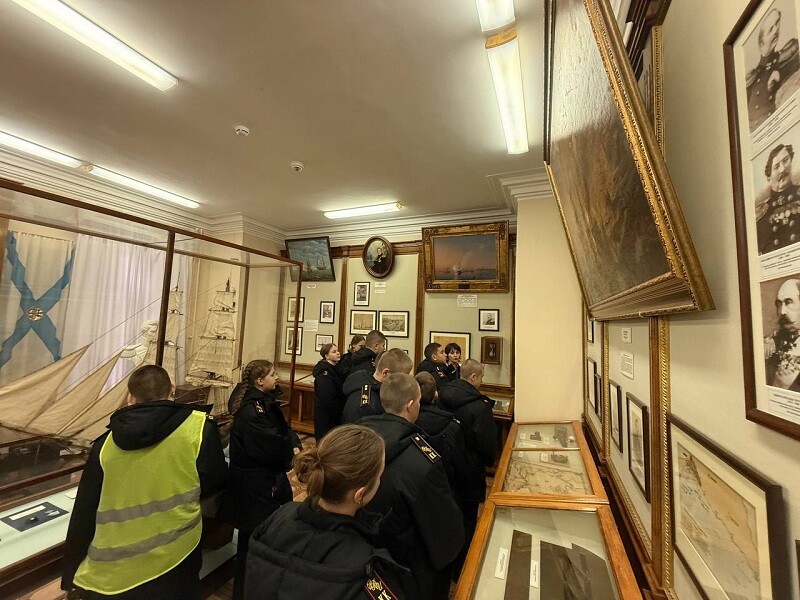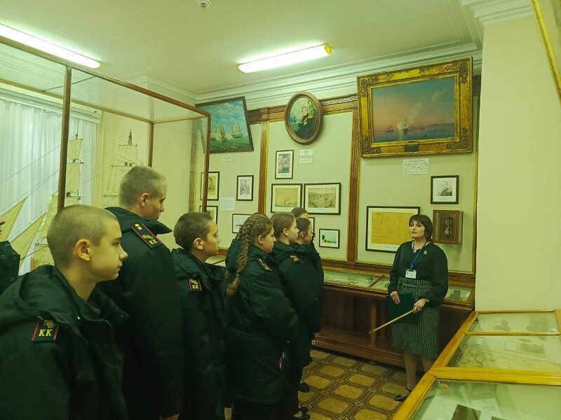 Для кадетов в музее были организованы экскурсия и лекция, посвященные паровым кораблям. Экскурсовод в зале № 1 основной экспозиции подробно рассказала курсантам о первом бое паровых кораблей в мировой истории. Это бой состоялся в ходе Русско-турецкой войны, 5 ноября 1853 года. В бою сошлись 10-пушечный турецкий пароход "Перваз-Бахри" ("Владыка морей") и 11-ти пушечный русский пароходофрегат "Владимир".