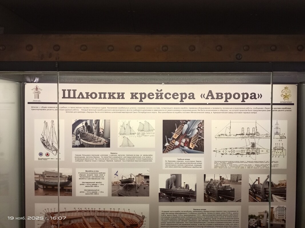 В филиале Центрального военно-морского музея имени императора Петра Великого на легендарном крейсере «Аврора» состоялось открытие временной выставки «Шлюпки крейсера "Аврора"». Экспозиция, рассказывающая о незаменимых спутниках любого крупного корабля, будет доступна для посетителей до 9 декабря 2025 года.