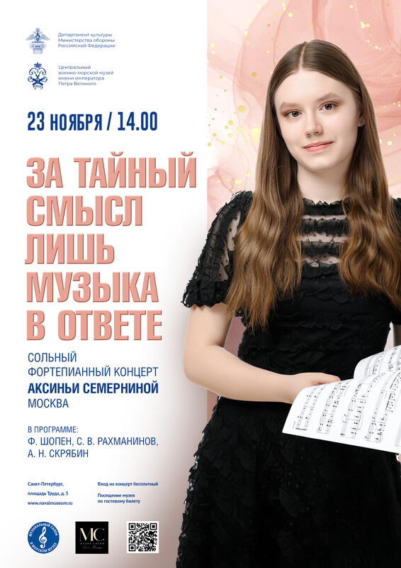 23 ноября в 14 часов приглашаем вас на сольный фортепианный концерт Аксиньи Семерниной «За тайный смысл лишь музыка в ответе».