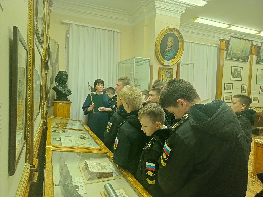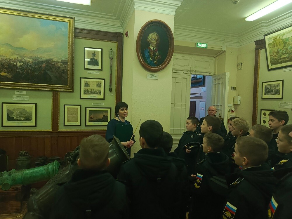 В залах музея, посвященного военно-морской истории России, нахимовцы прослушали лекцию «Всегда впереди! Всегда победитель!». А затем, приняли участие в организованном специально для них квесте «Бить не числом, а умением».