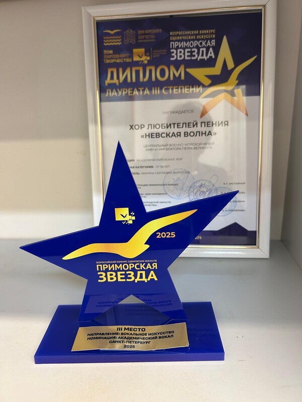 Хор любителей пения «Невская волна» при Центральном военно-морском музее успешно выступил на Всероссийском конкурсе сценического искусства «Приморская звезда», завоевав III место в номинации «академический вокал».