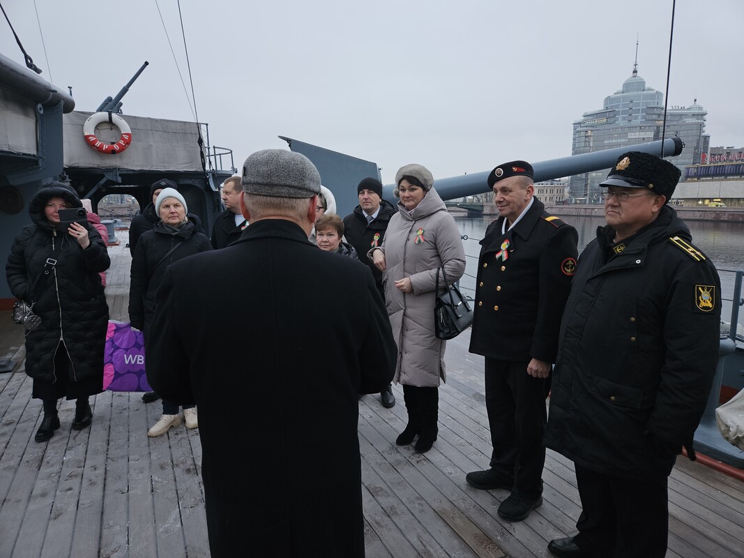 Для делегации была проведена обширная экскурсия по крейсеру «Аврора» и экспозиции филиала, которую блестяще провели лекторы-экскурсоводы С. Самарин и А. Сизов. Это мероприятие стало ярким стартом празднования, напомнив об общих героических страницах истории и укрепив дух морского братства.