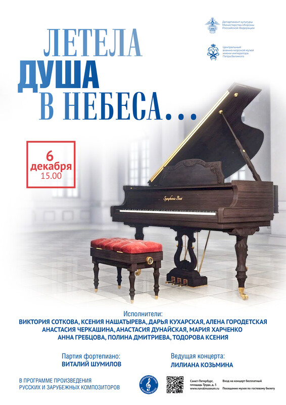 6 декабря в 15 часов приглашаем вас в Центральный военно-морской музей на концерт «Летела душа в небеса…».