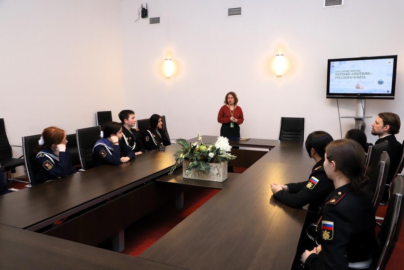 Основой для обсуждения, к которому гостей пригласила заведующая научной библиотекой ЦВММ Анастасия Гордеева, стал рассказ Владимира Шигина «Первый охотник Русского флота».