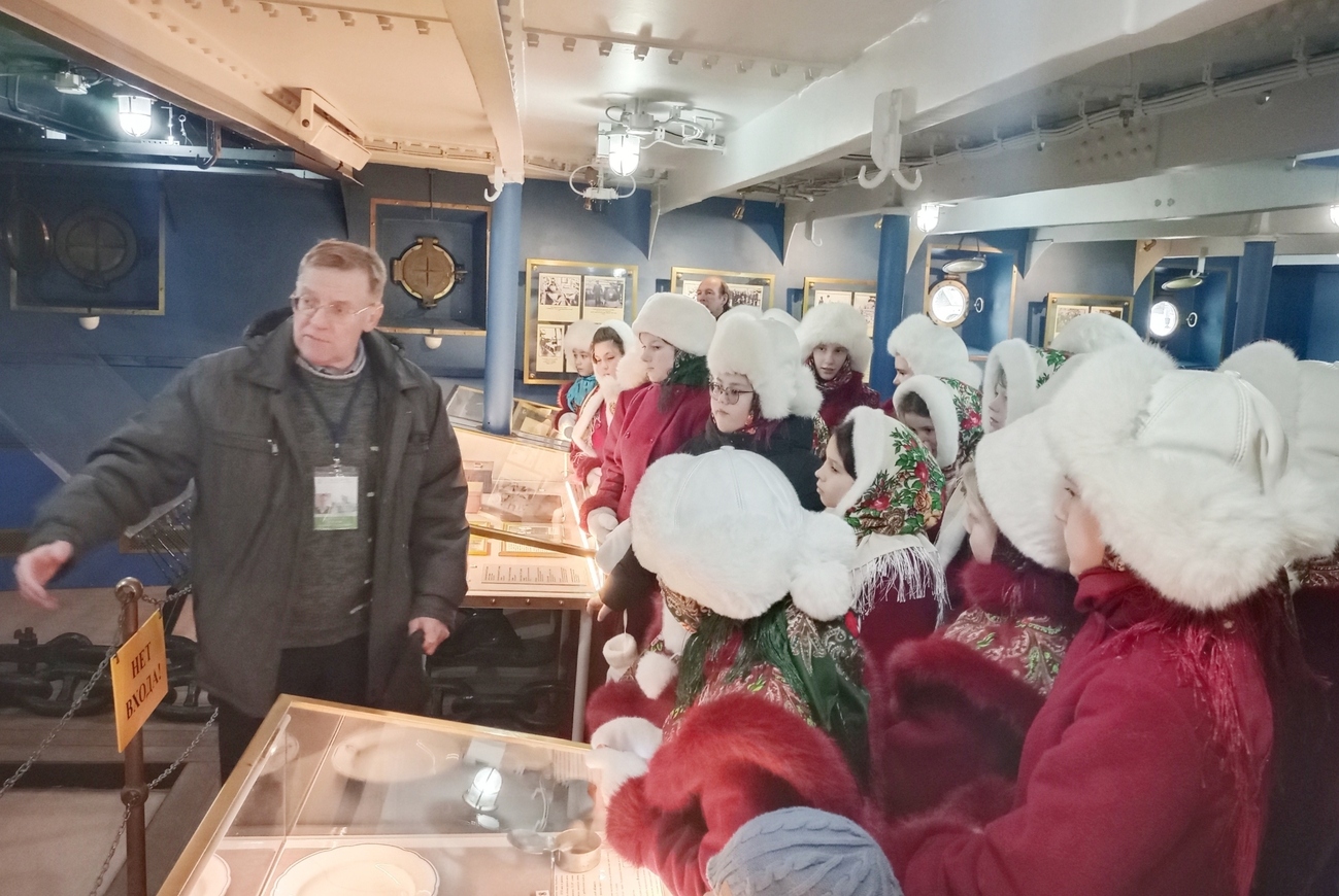 Гостями музея стали 280 воспитанников Православного кадетского корпуса Иоанна Кронштадтского и учениц православной приходской школы из Темрюкского района Краснодарского края. Для юных патриотов была организована масштабная экскурсионная программа: сотрудники музея провели 12 полноценных, увлекательных экскурсий, раскрывая этапы службы знаменитого корабля.