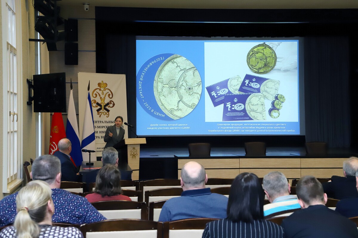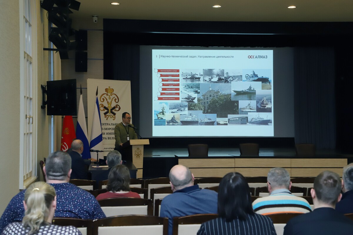 В Центральном военно-морском музее имени императора Петра Великого прошел традиционный научно-информационный час для сотрудников. Мероприятие было посвящено истории и современной деятельности одного из ведущих судостроительных предприятий страны – Центрального морского конструкторского бюро «Алмаз», а также недавнему успеху музея в рамках международной просветительской акции Русского географического общества «Географический диктант».