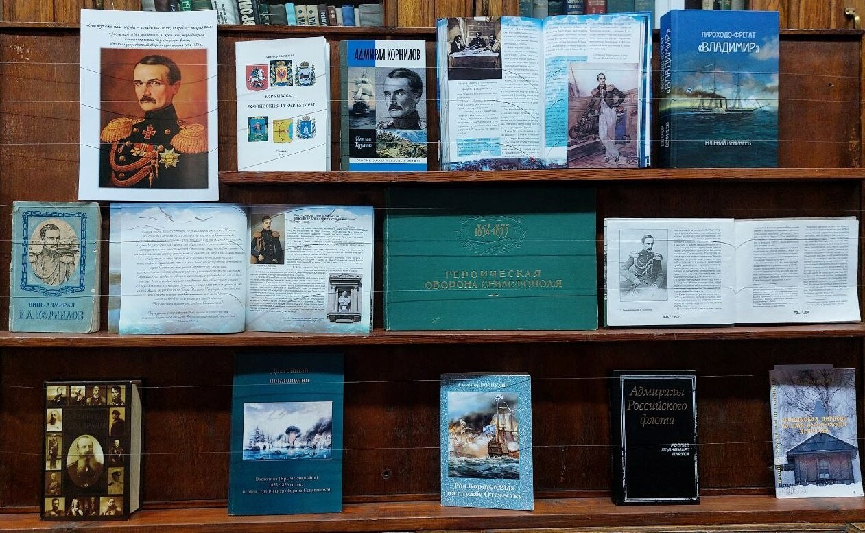 В рамках памятных мероприятий в библиотеке филиала ЦВММ «Музей Черноморского флота» начала работу книжная выставка «Отступать нам некуда – позади нас море, впереди – неприятель», посвящённая 220-летию со дня рождения В.А. Корнилова, вице-адмирала, начальника штаба Черноморского флота, одного из руководителей обороны Севастополя 1854-1855 гг. (1806 г.).