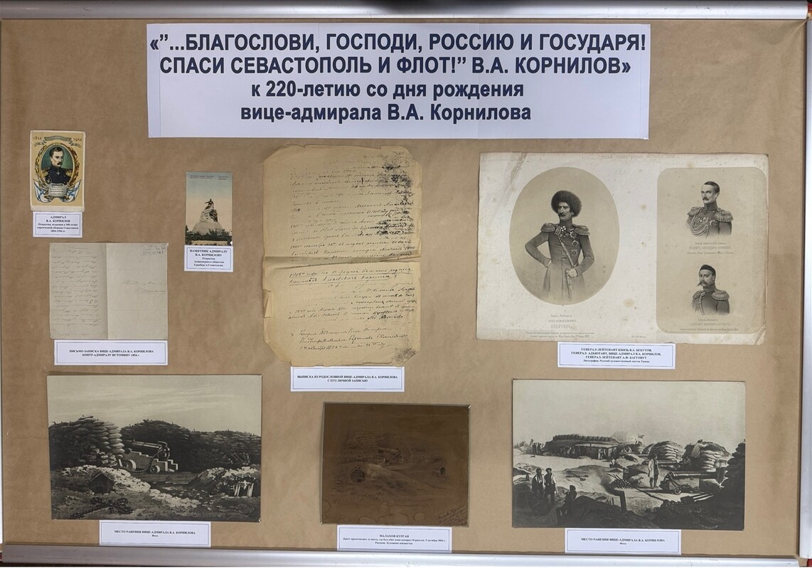 Экспозиция приурочена к 220-летию со дня рождения вице-адмирала Владимира Алексеевича Корнилова (1806–1854), начальника штаба Черноморского флота и одного из ключевых руководителей первой обороны Севастополя 1854–1855 годов.