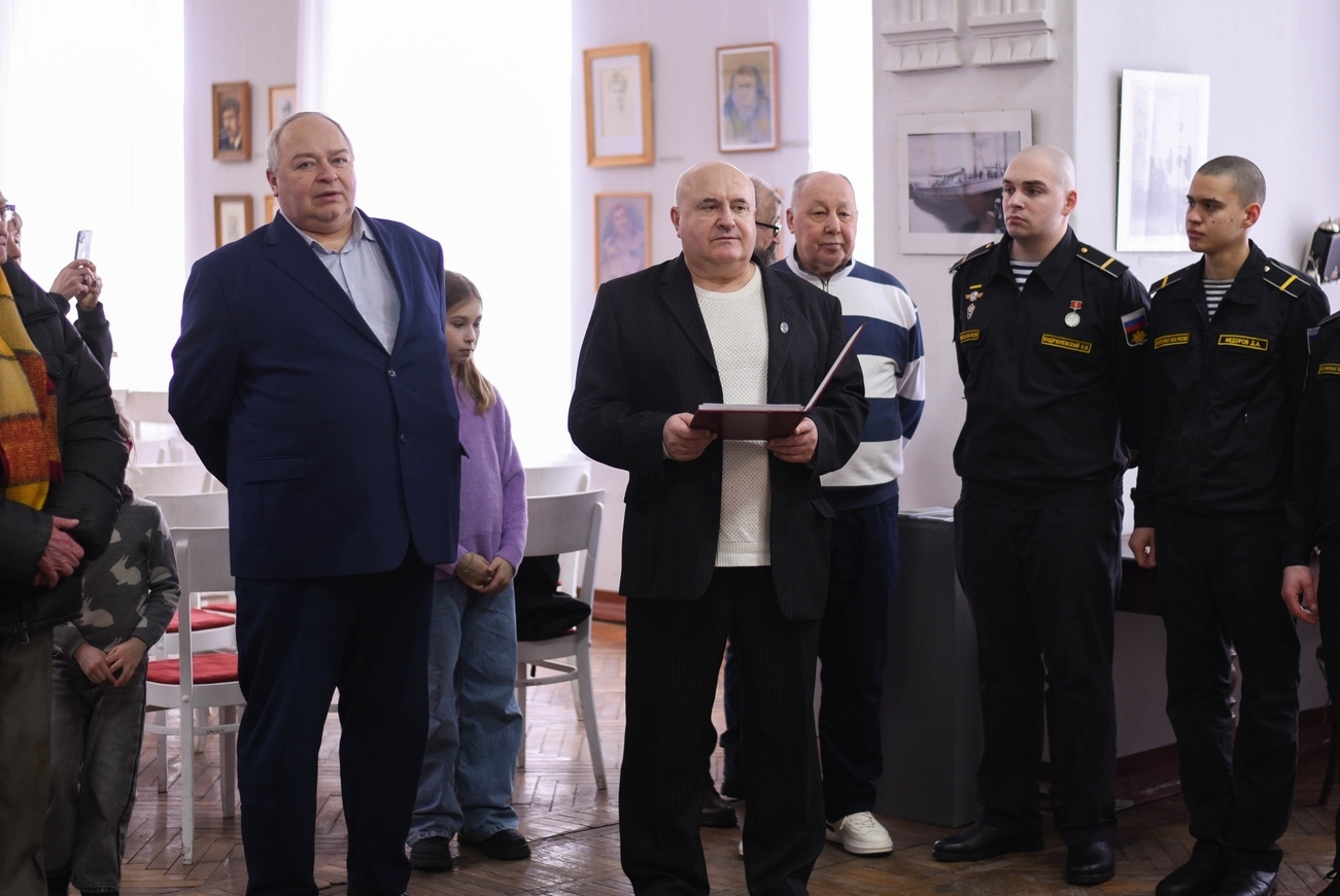 На торжественной церемонии открытия гостей приветствовал научный сотрудник филиала Александр Иванович Левченко, который отметил важность сохранения культурного наследия, связанного с историей подводного флота России. Также в мероприятии приняли участие представители семьи художника и его боевые товарищи — сослуживцы, разделившие с автором радость творческого события.