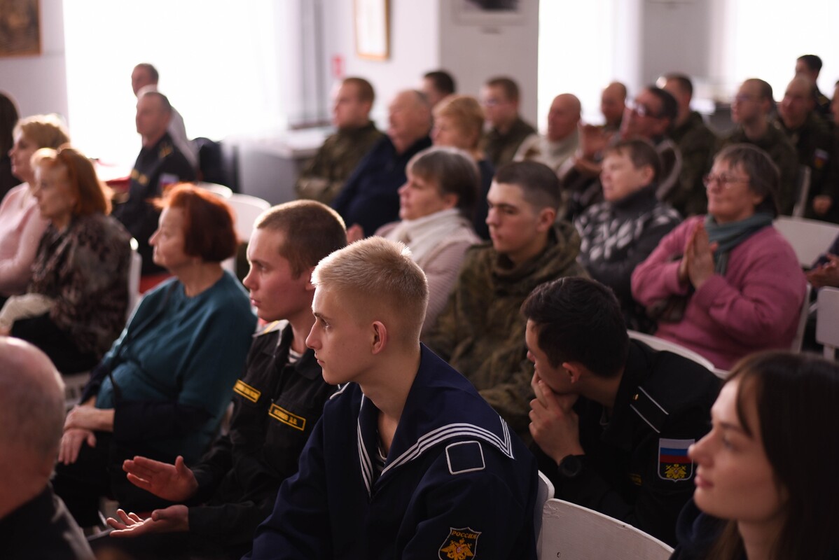 Перед зрителями выступили солисты Кронштадтского Дворца культуры — Александр Свойкин, Виктория Мураневич и Галина Калганова. В исполнении артистов прозвучали любимые многими поколениями песни, посвященные Родине, воинской доблести и флотским традициям. Зрители не просто слушали, но и с трепетом подпевали знакомые мелодии, создавая в зале уникальную атмосферу единства.