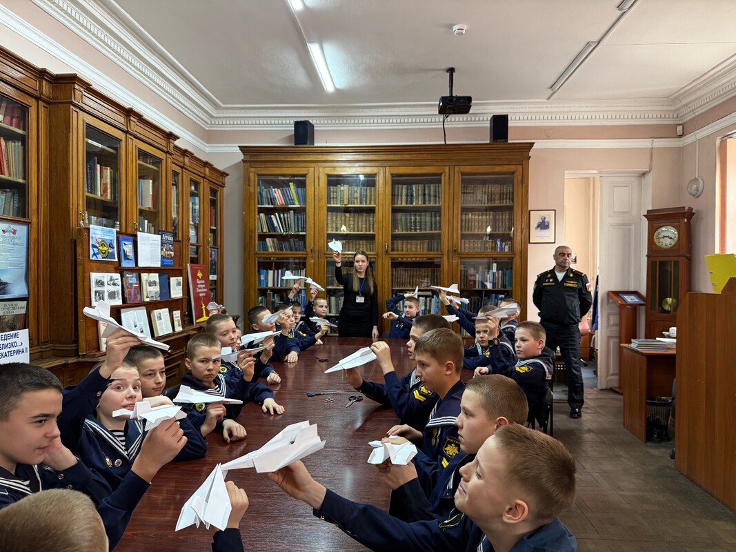 Особый интерес у будущих защитников Отечества вызвал практический блок. Культорганизатор музея Н. Салова провела для детей мастер-класс «Создай свой самолёт». Под руководством наставницы двадцать воспитанников училища увлеченно конструировали из бумаги модели «истребителей» и «бомбардировщиков».