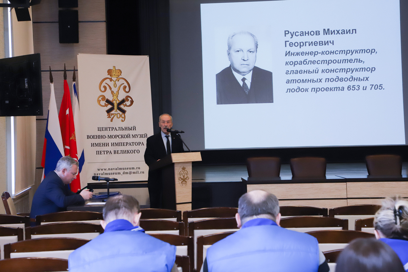 С докладами выступили председатель совета ветеранов Судостроительного завода «Северная верфь», кандидат технических наук Игорь Ивановский и младший научный сотрудник научно-экспозиционного отдела ЦВММ Ксения Булак.