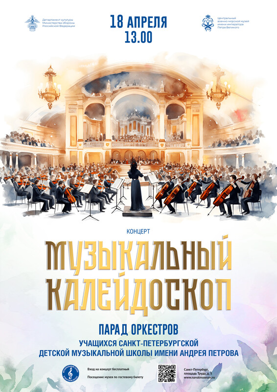 18 апреля в 13 часов в рамках проекта "Музыкальный салон в Морском музее" приглашаем вас на концерт «Музыкальный калейдоскоп» - Парад оркестров учащихся Санкт-Петербургской детской музыкальной школы имени Андрея Петрова.