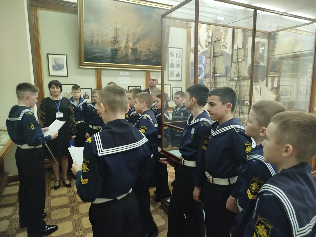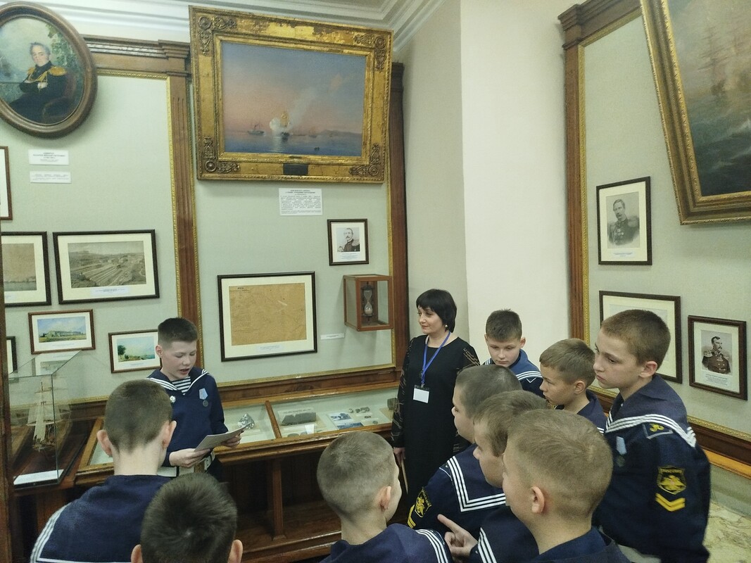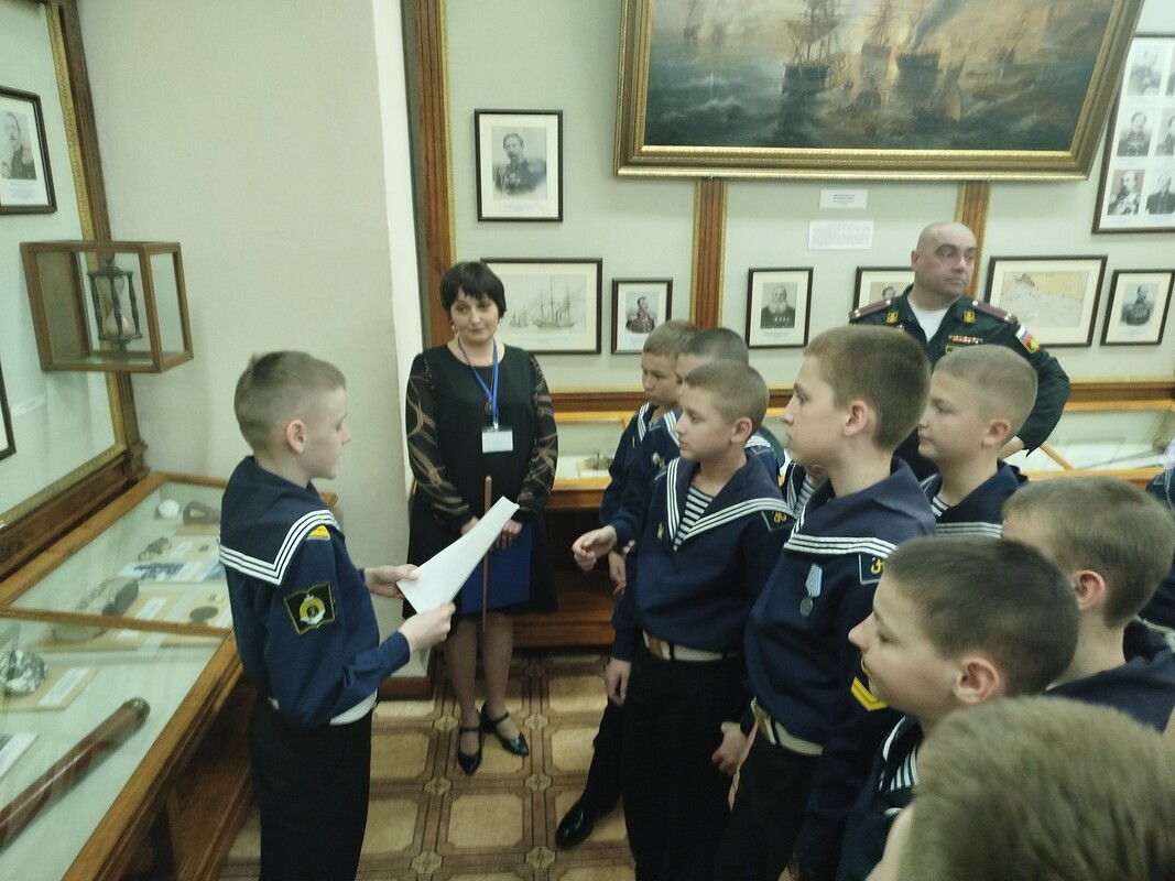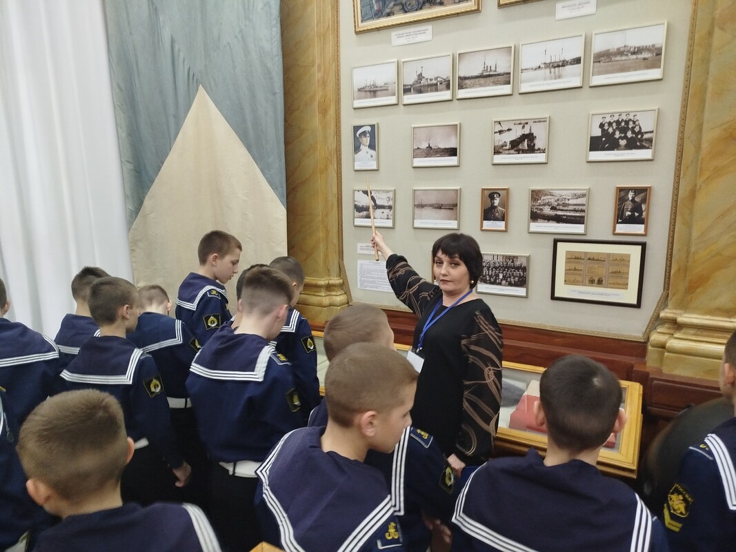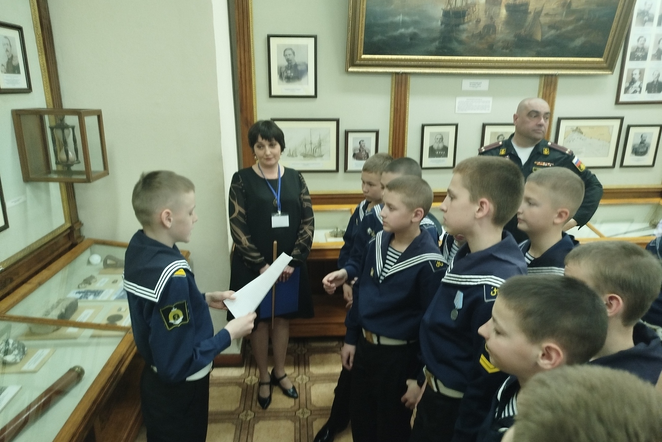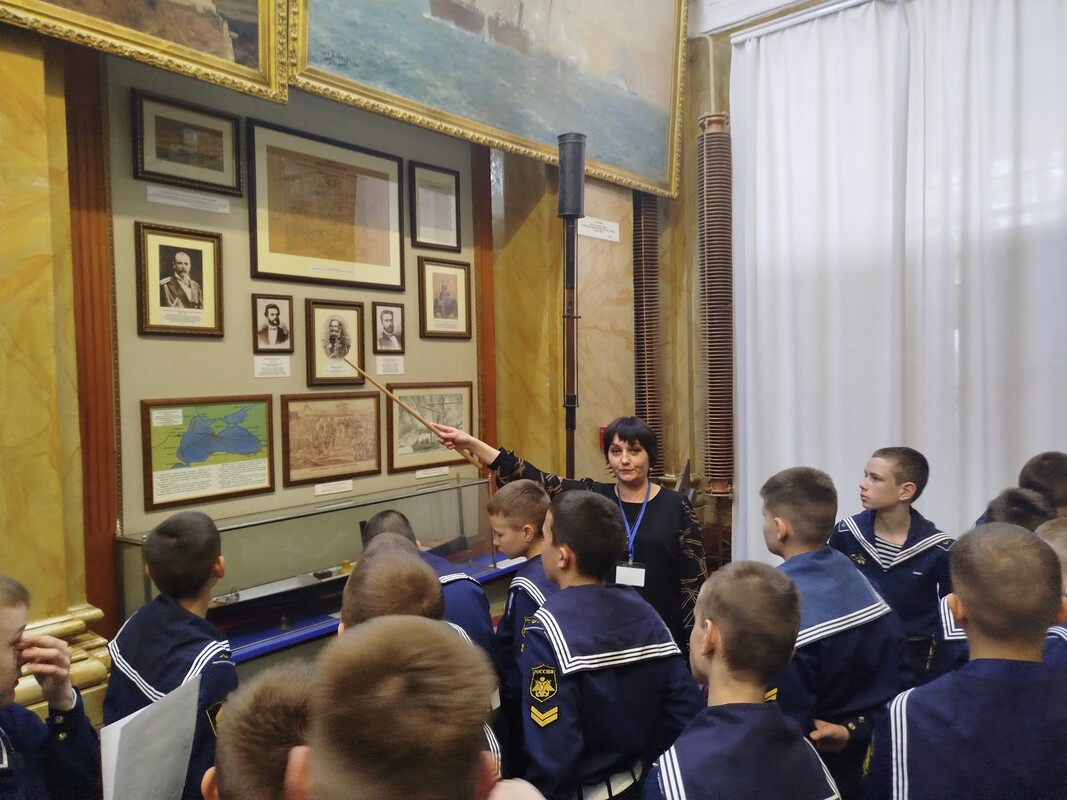 Мероприятие для воспитанников 6 А класса под руководством воспитателя Александра Голикова провела лектор-экскурсовод филиала Центрального военно-морского музея имени императора Петра Великого «Музей Чер» «номорского флота» Елена Столярова.
