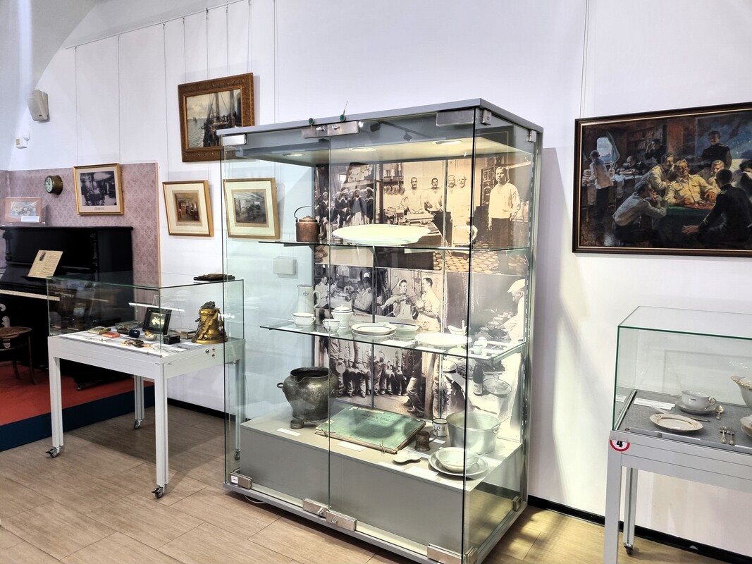 В следующем зале воссоздана атмосфера офицерской кают-компании конца XIX – начала XX века. Интерьер составлен из подлинных предметов и мебели из фондов музея – так посетители смогут проникнуться традициями, которые свято соблюдаются на российском флоте.