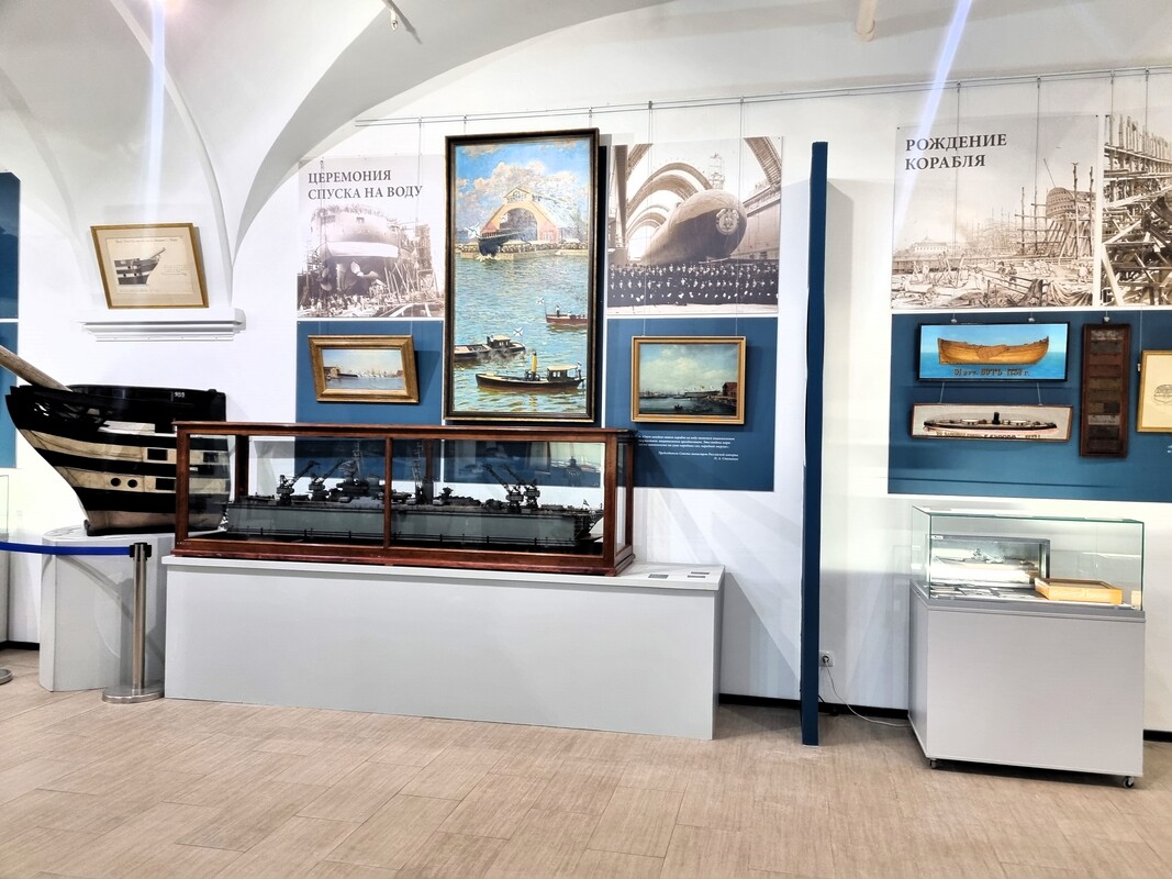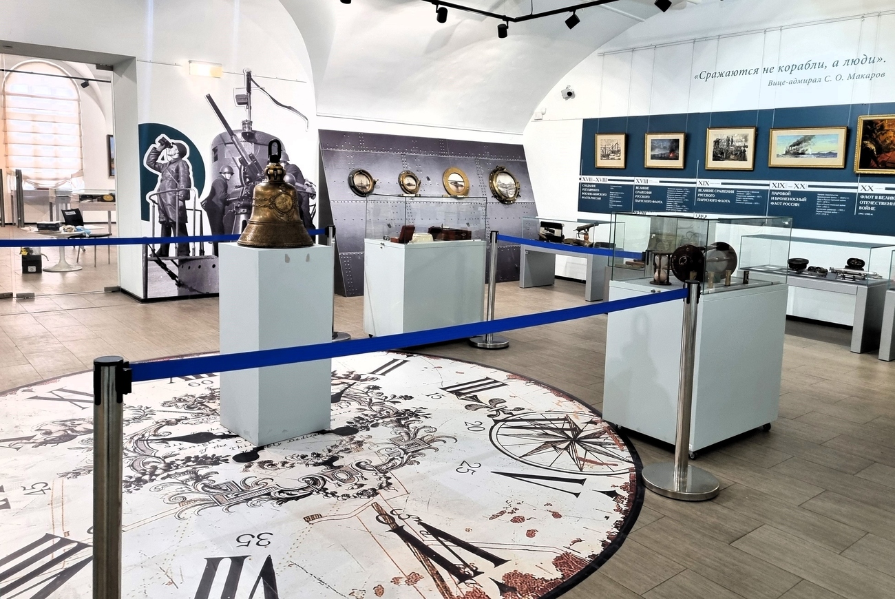 Большой блок экспозиции рассказывает об обычаях и церемониях морской службы: закладке кораблей, закладных досках, архитектуре судов и спуске корабля на воду. На исторической «ленте времени» отмечены главные сражения и географические открытия. Отдельного внимания заслуживает эволюция военно-морской формы одежды, а в рядах иллюминаторов на стенах можно увидеть изображения знаменитых кораблей и судов отечественного флота.