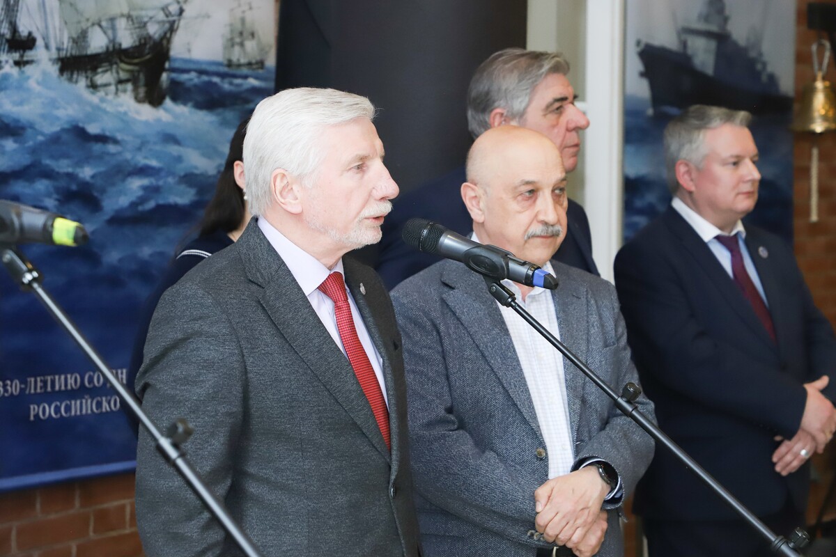 С пожеланиями успешной работы и данью уважения славным победам русских моряков выступил директор Российского государственного архива Военно-Морского Флота Валентин Смирнов, оказавший неоценимую помощь в создании экспозиции.