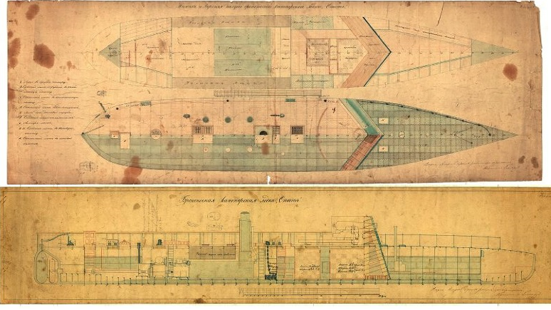 1. Чертеж нижней и верхней палубы канонерской лодки "Опыт". 1860-е гг. Номер по ГК: 43653448.